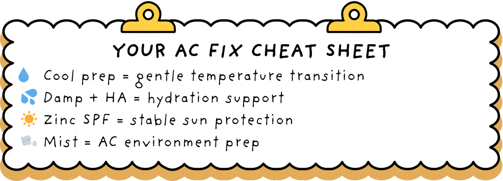 The Science: AC steals skin moisture through condensation. A mist with humectants like glycerin forms a “moisture shield,” so the air pulls water from the mist-not your skin.